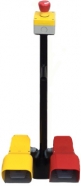 - Estructura de hierro pintado para 2 pedales ES2PS. - 1 pedal PVC amarillo PS1211 1AR - 1 pedal PVC rojo PS1241 1AR - 1 pulsador de parada de emergencia (seta de emergencia) en caja con tapa amarilla de 80x80x51 |