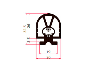 Perfil de material termoplástico TPE, con 2 partes de material plástico conductivo. Incorpora 2 hilos de cobre, para estabilizar el valor resistivo de contacto en todo el largo del borde.